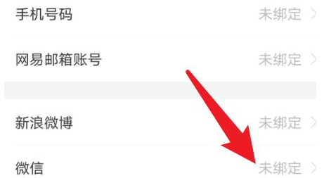 3、这时候你可以看到一个微信,未绑定的栏目,点击进入,然后根据提示来进行绑定即可。